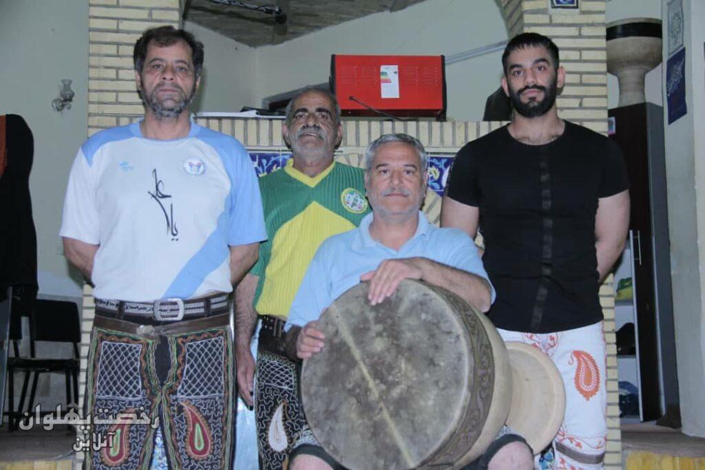 محمد کریمی درمیان ورزشکاران زورخانه پوریای ولی ابراز خوشحالی کرد .